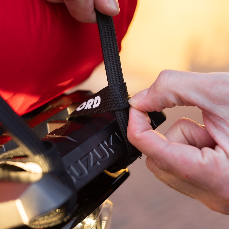 Popruhy jsou velmi bezpečné, antikorozní a díky absenci ostrých hran nepoškrábou motorku.